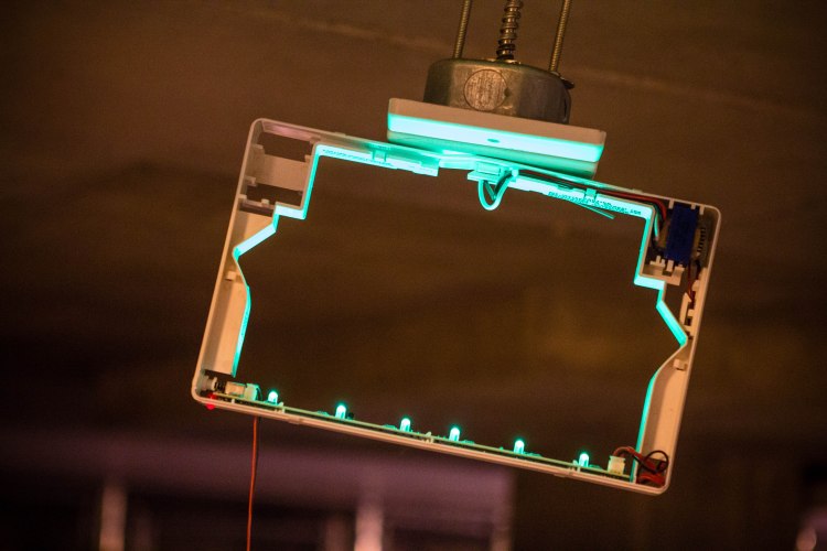 Passing through our garage I noticed this broken Exit sign. How did it get broken? Who knows. I just found the lighting to be beautiful in all its ‘mashedupness’.